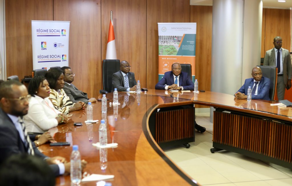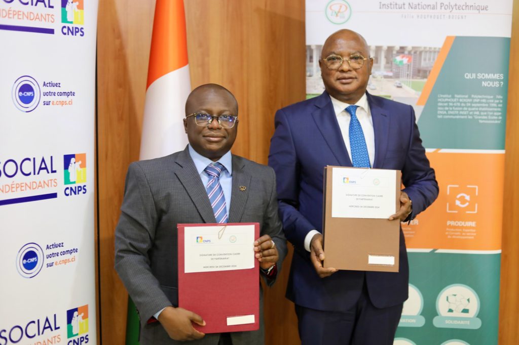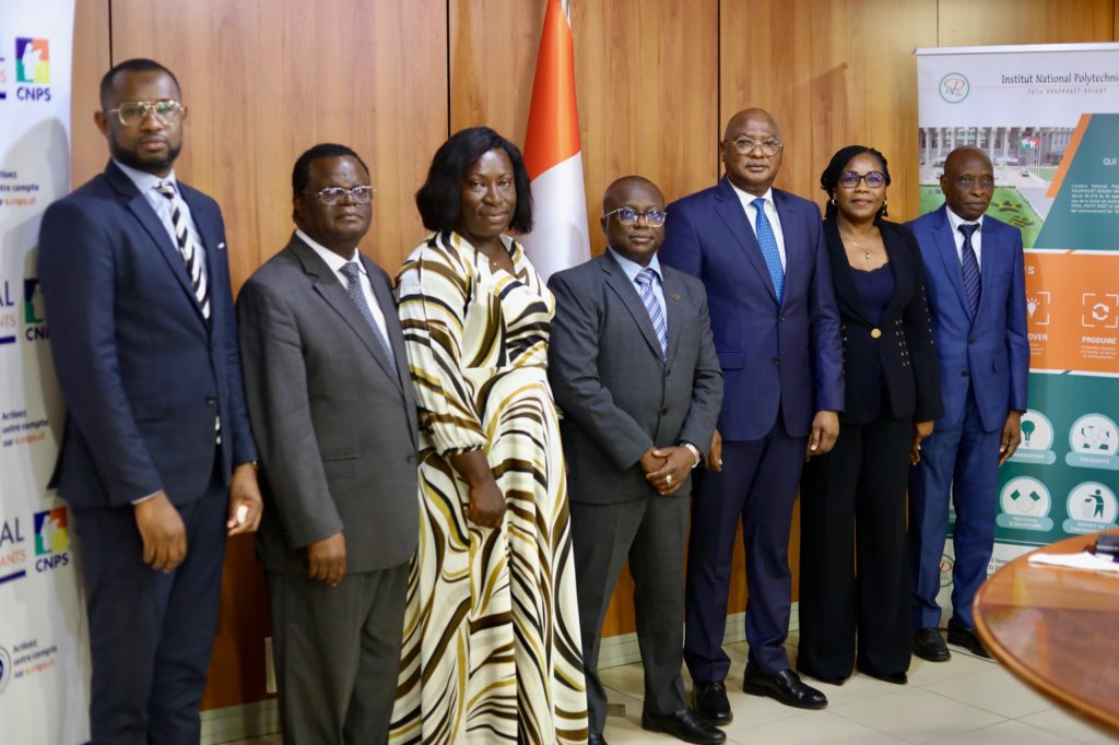 Le mercredi 04 Novembre 2024, l’échange des parapheurs a eu lieu entre l’Institut National Polytechnique de Yamoussoukro INP-HB et la Caisse Nationale de Prévoyance Sociale CNPS. Cet échange scelle le début d’un partenariat gagnant gagnant.